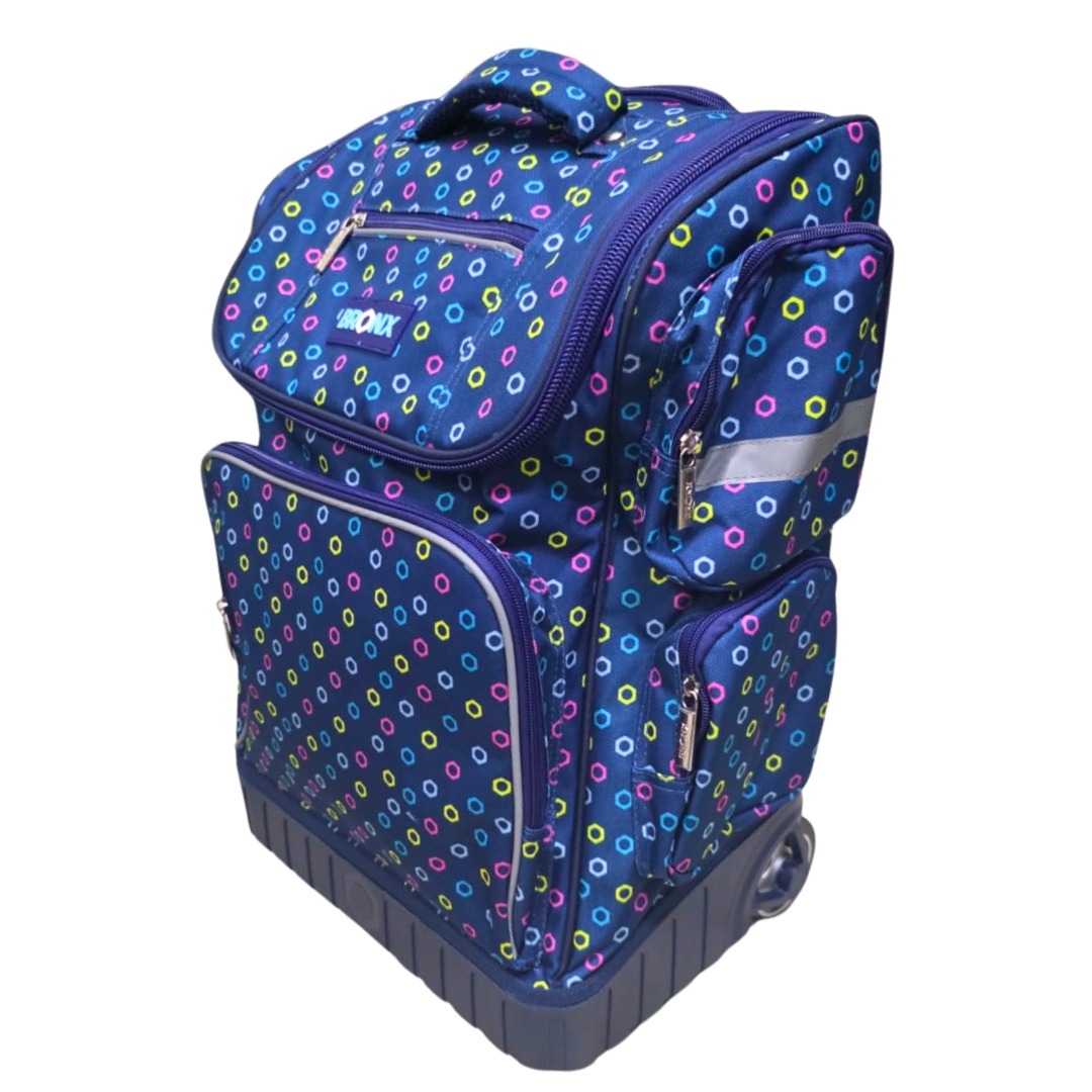 Bright, fun, and built to roll – the BRONX Trolley Mini Dots school bag is the perfect blend of playful design and everyday practicality. Covered in cheerful mini multicolour dots against a deep navy backdrop, this eye-catching bag makes every school day a little more exciting. Designed with comfort and convenience in mind, it lets kids move easily between home and class while keeping everything neatly organised.