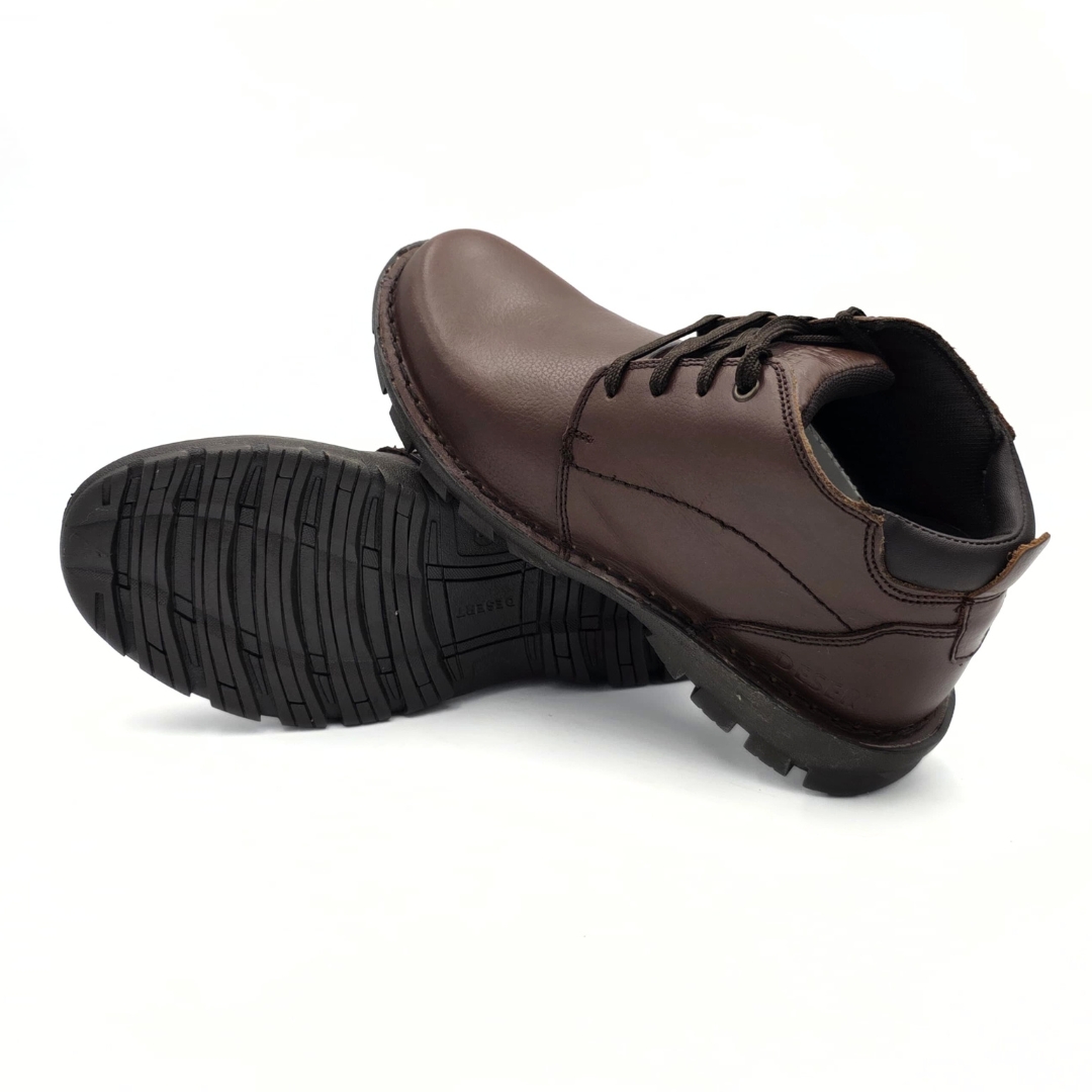 Step confidently through any terrain with the DESERT Ankle Boots – where rugged durability meets refined style. Crafted from premium genuine leather, these boots feature a classic lace-up closure, flexible structure, and detailed stitching for a polished yet practical look. The cushioned inner sole ensures exceptional all-day comfort, while the rigid rubber outsole offers enhanced traction on various surfaces. A back pull tab makes for easy on-and-off wear, making these boots the perfect choice for both outdoor adventures and urban exploration.