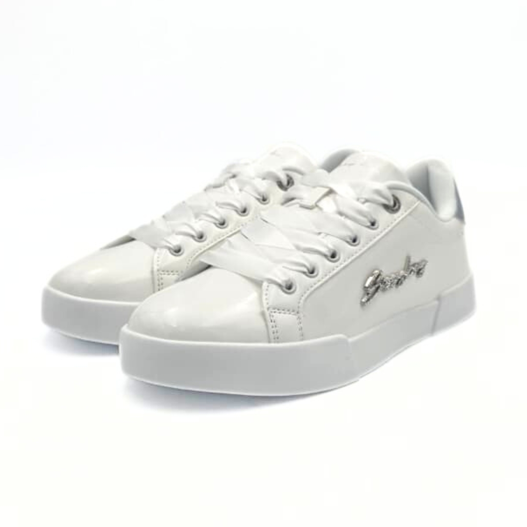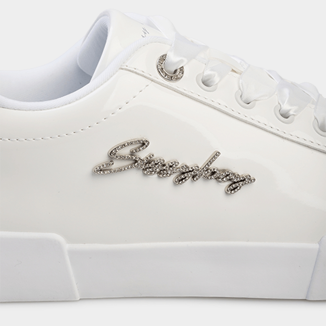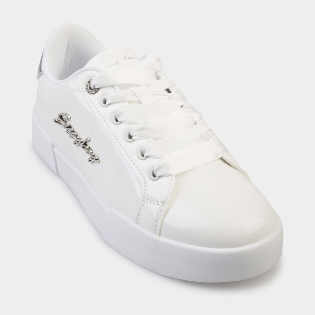 Step into everyday style with this classic Sissy Boy patent sneaker. Designed with a sleek low-top silhouette and glossy finish, it features lace-up fastening, a metallic heel accent, and signature branding for a polished, modern look. Perfect for adding a stylish edge to your casual wardrobe.